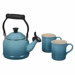 Le Creuset 1.25 Qt. Demi Kettle Tea Pot + 2 – 14oz Mugs Set Features: