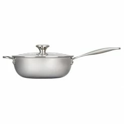 Le Creuset 3.5 Qt. Tri-Ply Stainless Steel Saucier Pan With Lid & Helper Handle